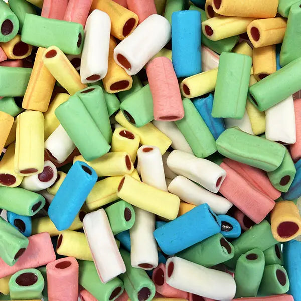 Ingrédients : Sirop de glucose-fructose, sucre, amidon, farine de blé (gluten), eau, acidifiants (E330, E270), amidon de pomme de terre, humectant (E422), correcteur d'acidité (E332), graisse végétale (palme), gélatine de bœuf halal, arôme artificiel, colorants (E100, E129, E133), agents d'enrobage (huile végétale: palme), émulsifiant (E322). Le colorant E129 peut avoir des effets négatifs sur l'activité et l'attention chez les enfants.